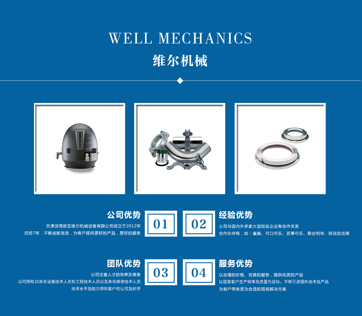 天津?yàn)I海新區(qū)維爾機(jī)械設(shè)備有限公司成立于2012年,注冊資金1000萬元。是一家有限責(zé)任公司,主要面向大眾群體,從事進(jìn)出口設(shè)備及備件的銷售及售后服務(wù),與國內(nèi)外多家大型企業(yè)有合作關(guān)系,如:雀巢、西得樂、可口可樂、百事可樂、聯(lián)合利華、阿法拉伐、GEA等。公司成立以來一直秉承現(xiàn)代企業(yè)的科學(xué)管理方法,注重人才的培養(yǎng)及儲(chǔ)備,現(xiàn)公司擁有20余名設(shè)備技術(shù)人員和工程技術(shù)人員以及多名維修技術(shù)人員,技術(shù)水平及能力得到客戶的認(rèn)可及好評(píng)!不斷提升企業(yè)的競爭力,使企業(yè)在發(fā)展中樹立起良好的社會(huì)形象。憑借良好的水平和成熟的技術(shù)。以科學(xué)的管理手段,良好的技術(shù)力量,將不斷深化改革,創(chuàng)新機(jī)制,適應(yīng)市場,發(fā)展。公司客戶及服務(wù)內(nèi)容:亞實(shí)動(dòng)力、機(jī)械設(shè)備安裝調(diào)試;約翰迪爾設(shè)備安裝及水電氣安裝;凱諾斯、電裝、設(shè)備安裝;GEA公司,飲料無菌生產(chǎn)線整線的設(shè)備安裝調(diào)試,舊線的大修保養(yǎng);為GEA液體部提供服務(wù)技師,對無菌生產(chǎn)線進(jìn)行安裝和調(diào)試。天津聯(lián)合利華工廠...